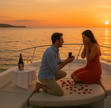 Faites votre demande en mariage bateau Guadeloupe : moment intime, cadre paradisiaque, coucher de soleil et service premium Ă bord.