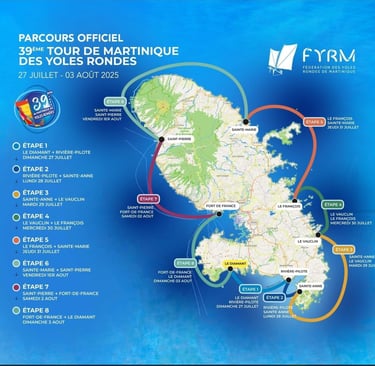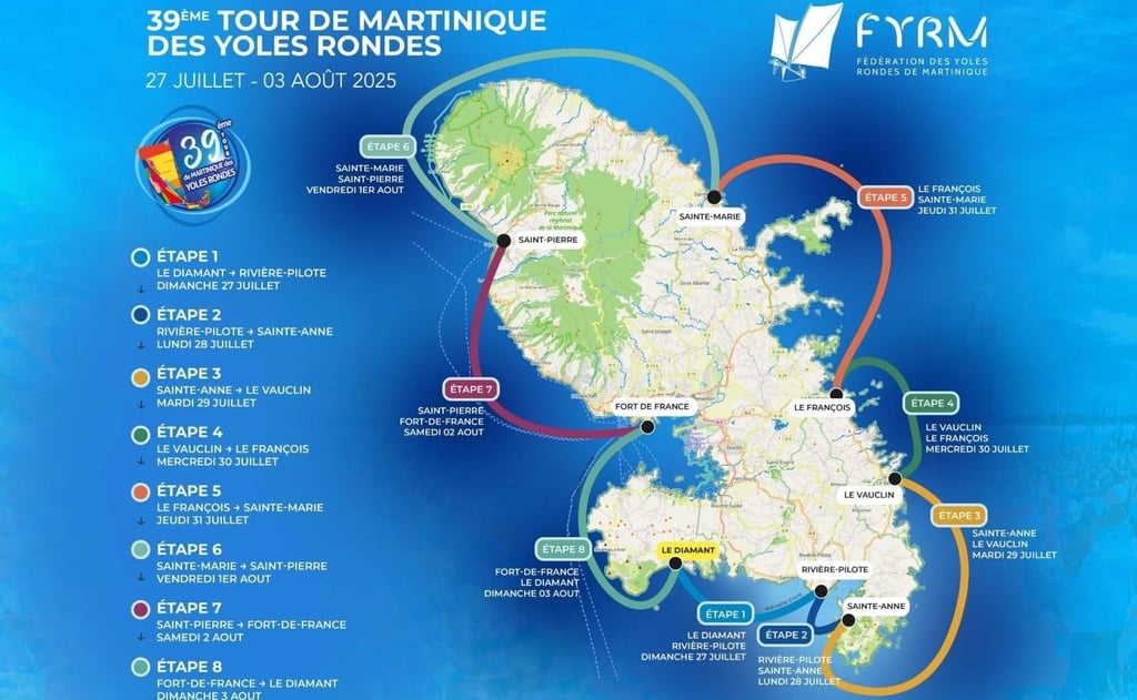 Du 27 juillet au 3 août 2025, la Martinique vibrera au rythme explosif du Tour des Yoles Rondes. Huit étapes, des voiles multicolores, une ambiance de carnaval flottant autour de l’île : vivez l’événement au premier rang !